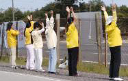 Selon le Mississauga News, les pratiquants se sont alignés le long de la barrière, qu'ils ont couverte de bannières, pour faire les exercices de Falun Gong. Tout le long du parcours, de l’autoroute jusqu’aux chutes du Niagara, les pratiquants ont pu être vus en groupes, attendant la visite de Hu pour lui demander avec insistance d’arrêter la persécution.