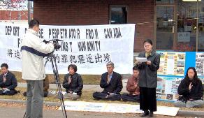 Le 3 novembre 2005, le rapport du correspondant de Minghui à Vancouver, Li Hua: le matin du 2 novembre 2005, les pratiquants à Vancouver ont tenu une conférence de presse devant le consulat chinois pour annoncer l’action judiciaire contre Lin Yanzhi, secrétaire adjoint du comité provincial de Jilin, du Parti communiste chinois (PCC), qui visite actuellement le Canada. Il a été poursuivi à Toronto pour sa participation active à la persécution de Falun Gong. Les pratiquants ont lu l’Annonce de l'Association de Falun Dafa aux fonctionnaires du PCC du consulat et ont averti ceux qui sont impliqués dans la persécution, y compris les diplomates dans les ambassades et les consulats chinois, d’arrêter leur méfait et de corriger leurs erreurs.