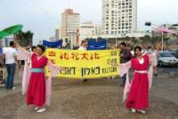 Avant la conférence, le 2 ou 3 décembre, les pratiquants ont tenu une exposition d'art « Vérité Bienveillance Tolérance » à Tel Aviv et ont fait un défilé pour montrer la grâce de Dafa. Le soir, quelques pratiquants ont continué un appel paisible devant l'ambassade chinoise.