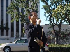 M. Yinquan Liu, personne contact pour le Parti social-démocratie chinois de l'ouest des Etats-Unis, a exposé la persécution du PCC dans son discours : « Le PCC n'admet pas la persécution de Falun Gong, mais elle se produit chaque jour. Dans ma ville natale, Changyi, province de Shandong, mon professeur de lycée, M. Wu Dajun, a été torturé pour persister dans sa pratique du Falun Gong. Il est un homme très aimable. Il a été retiré. Il a été humilié et a dû défiler dans les rues avec une planche accroché à son cou. Pendant la fête du printemps de l'année dernière, il a été forcé de se tenir devant le bâtiment du gouvernement de la ville avec une planche accroché à son cou. Plus tard, il a été envoyé à un hôpital psychiatrique. »