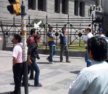 Les truands engagés par l'ambassade chinoise ont déchiré les banderoles et les dépliants entre les mains des pratiquants et confisqué leurs affaires personnelles. Ils couraient de façon effrénée, battant les pratiquants au hasard, même devant les médias. Les Argentins qui se tenaient à proximité pour participer aux manifestations pour d'autres raisons sont venus au secours des pratiquants de Falun Dafa. Ils ont essayé d'arrêter les truands mais ont été également attaqués. Certains d'entre eux saignaient aussi.
