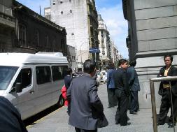 Le matin du 14 décembre, les pratiquants ont protesté sur la Place du Congrès. Ils ont déployé des banderoles et clarifié la vérité au sujet du Falun Gong et de la persécution aux membres du parlement. Ils ont annoncé les détails de l’action en justice contre Luo Gan enregistrée le jour précédant et expliqué les crimes que Luo Gan a commis.