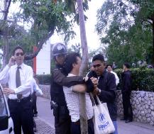 Le 15 décembre, devant l'ambassade chinoise, la police thaïlandaise, incitée par le PCC a maltraité les pratiquants de Falun Gong
