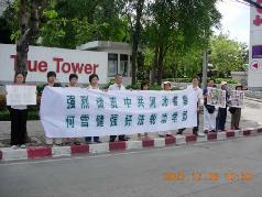 Le 10 décembre 2005, face à l'ambassade chinoise, les pratiquants de Falun Gong, protestant paisiblement, ont été malmenés par la police thaïlandaise. Le 14 décembre, trois pratiquants qui distribuaient des dépliants de Falun Gong ont été battus par la police à Pattaya. Le 15 décembre, huit pratiquants ont été arrêtés par la police thaïlandaise devant l'ambassade chinoise. Une pratiquante a été libérée, sept autres sont toujours détenus au bureau d'immigration. Ils ont commencé une grève de la faim.