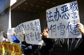 Un représentant des pratiquants a lu une lettre ouverte. La lettre indiquait: C'est un autre crime impardonnable commis par le Parti Communiste Chinois. Vers 14h00, le 25 novembre 2005, pendant la détention et l'interrogation illégales au commissariat de la police municipale de Dongchengfang, dans la ville de Zhuozhou, province de Hebei, le policier He Xuejian (dans la vingtaine), a battu et violé deux pratiquantes de Falun Gong, Liu Jizhi ( 51 ans ) et Han Yuzhi (42 ans), en plein jour. Nous condamnons fortement le Parti Communiste Chinois d’encourager et de dissimuler les crimes de la police! Traduisez Xuejian en justice! Nous réclamons la restauration de la justice.Nous avertissons également tous les policiers qui sont silencieux sur les crimes commis contre les pratiquants innocents que « les principes divins sont les plus justes, ceux qui font des mauvaises actions, recevront le châtiment ».