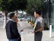 Les représentants des pratiquants de Falun Gong, y compris Wu Yingnian, professeur associé à l'université de la Californie à Los Angeles (UCLA) sont entrés au consulat de l'Argentine et ont remis une lettre de protestation, une copie des Neuf commentaires sur le parti communiste et des dépliants de clarification de la vérité au sujet de la persécution du Falun Gong par le parti communiste chinois à M. Fernando Brun, Vice-consul. Ils ont eu une conversation amicale et franche. M. Brun a exprimé qu'il s'était renseigné sur l'incident de l’assaut des pratiquants de Falun Gong en Argentine et il a demandé avec condescendance, l’état des blessures infligées aux pratiquants qui avaient été attaqués.