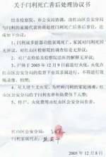 Le 8 décembre à 9:30 heures, le personnel du centre de détention du district de Hongshan, le département de police de Hongshan, y compris le procureur principal du Bureau du procureur et le médecin examinateur, ont annoncé à la hâte la cause du décès et le traitement du corps de Yan Li. Le département de police a écrit un prétendu accord et a contraint la famille de Yan Li à le signer. L’ « accord » est photocopié ci-dessous et se lit comme suit :
