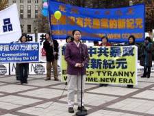 Zhou Xuefei fait un discours au rassemblement soutenant les retraits du PCC