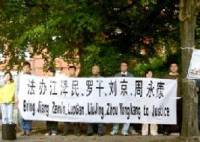 Le 17 octobre 2005, les pratiquants de Falun Gong se sont rassemblés à l’extérieur de l’ambassade chinoise en Irlande et ont lu la « Déclaration de l’Association de Falun Dafa ». En même temps, ils ont déployé une banderole qui disait : « Traduisez Jiang Zemin, Luo Gan, Liu Jing et Zhou Yongkang en Justice. » Les pratiquants ont invité ces fonctionnaires et individus du PCC qui continuent à participer à, où assistent le PCC à persécuter le Falun Gong à se réveiller aussitôt que possible et d’arrêter la persécution.