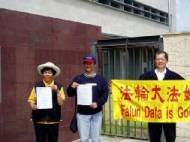 Après que la Déclaration a été lue, trois représentants de Falun Gong l’ont remise au comptoir du consulat. Le commis de bureau a refusé d'accepter la lettre, donnant diverses excuses. Les pratiquants ont dit que la lettre était pour leur propre bien et espéraient qu'ils saisiraient cette occasion de se renseigner sur son contenu ou de lire la « Déclaration de l’Association de Falun Dafa » sur l'Internet. Les pratiquants ont laissé la lettre sur le comptoir avant de partir. On a également signalé que les pratiquants de Falun ont envoyé la Déclaration par télécopie aux consulats chinois dans différentes régions.