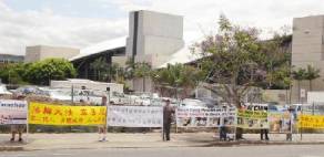 À 10h00, le matin du 24 octobre 2005, les pratiquants de Falun Gong en Malaisie se sont rassemblés devant l'ambassade chinoise en Malaisie pour lire la « Déclaration de l'Association de Falun Dafa » afin d'avertir sévèrement les tortionnaires qui suivent le PCC de cesser immédiatement de participer à la persécution.