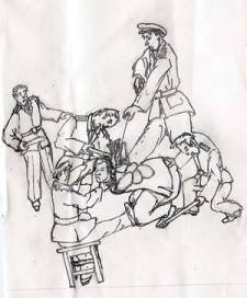 torturé, comme humiliation finale, on lui forçait la tête contre le mur et on