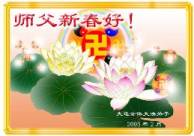 Comme le Nouvel An Lunaire arrive, nous aimerions pour offrir nos meilleurs voeux! Vos disciples sont incapables d’exprimer leur gratitude au Maître, avec aucun langage humain pour son immense grâce de nous sauver. En ce Nouvel An, nous serons plus diligents à bien accomplir les trois choses et à laisser aller nos attachements humains. Nous maîtriserons les matières dans la cultivation avec nos pensées droites et suivrons de près le Maître pour rectifier le Fa et accueillir le grand moment quand le Fa rectifiera le monde humain.
