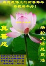 En même temps, nous aimerions souhaiter une Bonne Année aux pratiquants qui travaillent à minghui.ca et à tous les pratiquants d’outremer! Vous avez travaillé tellement fort! Encourageons-nous les uns les autres, prenons la Loi comme enseignant et allons de l’avant pour réaliser nos missions sacrées.