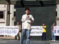 Le rassemblement pour sauver Charles Lee a commencé à midi, l’organisateur du rassemblement, M Dean, a dit que le Dr Charles Lee avait sacrifié sa liberté pour soutenir les droits humains du peuple chinois ainsi que leur liberté de croyance. Au mois de janvier 2003, Charles Lee est allé en Chine pour faire connaître la vraie histoire sur le Falun Gong, mais il a été arrêté par la police chinoise à l’aéroport de Guangzhou .Depuis son arrestation Charles Lee endure diverses formes de mauvais traitements incluant le gavage, des tentatives de lavage de cerveau et autres genres de torture physique et mentale. En prison, on l’oblige à faire des chaussures dans un environnement rempli de matériaux toxiques. On le force à travailler des heures supplémentaires.