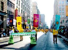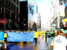 Le 13 mars 2005, la grande parade annuelle de la Saint Patrick s’est tenue à Montréal. Les pratiquants du Falun Gong ont été parmi les 100 groupes, à participer au défilé.