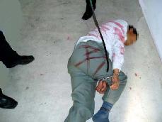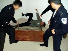 Zhao Xiaopo, Hu Yajun et Quan Xingtong, directeurs du centre de détention de Fangzheng, ont ordonné à des criminels (Wang Yi, Deng Hongpeng, Yang Mingjun et Tong Shuxue) de torturer des pratiquants du Falun Gong. Les méthodes employées ont été : 1 ; Frapper les globes oculaires avec les doigts 2 ; Percer des trous dans les doigts, doigts de pied, tête, visage et autres 3 ; Frapper les côtes 4 ; Frapper la gorge avec des chaussures et marteler la tête 5 ; Tirer la barbe 6 ; Donner des coups de pieds en forçant les pratiquants à se pencher (Reconstitution photo 1)