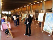 Quarante peintures de pratiquants du Falun Gong ont été exposées dans un vestibule gris du campus de l’université Simon Fraser (SFU) sur la Montagne Burnaby. Les couleurs lumineuses et la conception artistique de ces œuvres d’art ont donné à l'atmosphère quelque peu ennuyeuse du couloir une nouveauté et une fraîcheur.