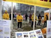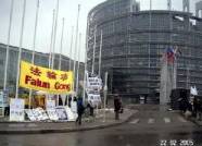 Pendant la conférence de l’Union Européenne en France, les pratiquants du Falun Gong ont organisé des activités et recueilli des signatures pour les pétitions en soutien au Falun Dafa face au bâtiment du parlement européen. Même si le climat était particulièrement froid, les pratiquants ont mis en scène une exposition anti-torture pour interpeller l’Union Européenne et le monde sur la persécution brutale que les pratiquants du Falun Gong subissent en Chine.