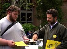 Deux différents reporters du journal de l’école sont venus écrire des reportages sur le Falun Gong et la persécution. L’un d’entre eux s’est centré sur l’événement du jour et l’autre sur Charles Lee et les incidents spécifiques de torture. (Charles Lee est un citoyen américain qui est actuellement emprisonné en Chine parce qu’il est un pratiquant de Falun Gong ; il a été arrêté en Chine quand il est allé visiter ses parents et clarifier la vérité au sujet de la persécution).