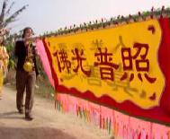 Dans un village de l’est de la province de Guangdong, c’est une coutume locale de faire un défilé après le Jour de l’an chinois afin de montrer du respect aux êtres divins. À cette occasion, chaque famille fabrique des drapeaux ou des bannières sur lesquels ils brodent diverses sortes de messages et ils défilent dans les villages voisins.
