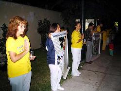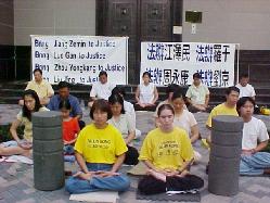 Le 13 octobre 2004, les pratiquants à Houston ont pratiqué les exercices en groupe devant le consulat chinois.