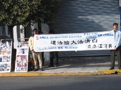 Le 20 juillet 2004, les pratiquants du Mexique ont fait un appel pacifique devant l’ambassade de Chine dans la Ville de Mexico pour condamner la persécution lancée par Jiang Zemin qui dure depuis cinq ans.