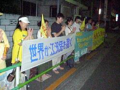 Dans la soirée du 23 juillet 2004, les pratiquants au Japon ont émis des pensées droites devant l’ambassade de Chine au Japon afin de révéler la brutale persécution ourdie par le régime de Jiang à l’encontre des pratiquants de Falun Gong et de commémorer les compagnons de pratique qui ont perdu leur vie en raison de la persécution.