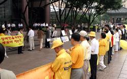 Le 20 juillet 2004, à l’occasion du 5e anniversaire du début de la persécution du Falun Gong, les pratiquants coréens ont tenu des activités devant l’ambassade chinoise pour condamner vivement la répression du régime de Jiang et pour demander la fin de la persécution.