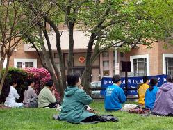 Dans l’après-midi du 25 avril 2004, les pratiquants dans la région de Washington, DC, ont fait des exercices en groupe devant l’ambassade chinoise afin de commémorer le 5e anniversaire de l’appel pacifique du 25 avril à Pékin en 1999.