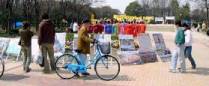 Le 27 mars 2005, le premier dimanche après la cérémonie d’ouverture de l’exposition 2005 de renommée mondiale à Aichi au Japon, des centaines de pratiquants de Falun Gong ont tenu une conférence de presse dans un parc à Nagoya, condamnant le Parti Communiste Chinois et la faction de Jiang Zemin pour leur persécution envers le Falun Gong. Après la conférence de presse, afin d’aider davantage de gens à apprendre le Falun Gong, les pratiquants ont fait un défilé de plus de deux heures à travers le centre-ville de Nagoya, mené par une escorte policière japonaise. Le défilé a eu un grand impact sur cette métropole moderne animée.