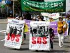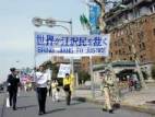Suivaient ensuite des bannières et des photos exposant la persécution de la faction de Jiang envers le Falun Gong. Les photos montrant la persécution brutale ont touché le cœur des gens. Les pratiquants de Falun Gong ont persévéré silencieusement et sont demeurés indifférents à la persécution, et ils ont maintenu leur grande compassion et leur tolérance au sein de la persécution brutale. Un grand nombre de gens tout le long du parcours du défilé étaient touchés par les messages du défilé. Les bannières portant le message que Jiang Zemin avait été traduit en justice dans 14 pays pour sa persécution du Falun Gong ont démontré que ceux qui ont fait du mal finiront assurément par être punis par la loi.