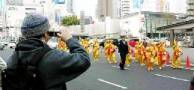 Un jeune Japonais a pris des photos de la procession avec l’appareil photo de son téléphone portable et une femme âgée a suivi la procession pour la filmer. Une Japonaise qui se hâtait a stoppé sa course. Après avoir regardé le défilé pendant un moment, elle a téléphoné à son amie et lui a dit « Ah c’est vraiment beau ! ».