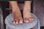 Par la suite les pieds de Wang se sont décomposés et sont tombés ce qui lui a donné son handicap permanent.