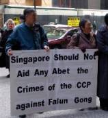 Les pratiquants protestant devant le Consulat de Singapour à Chicago