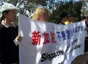 Qin Jin, un représentant du front démocratique (branche de l’Australie) a écrit dans une pétition : les pratiquantes de Falun Gong de Singapour Mmes Ng et Cheng ont reçu une punition injuste octroyée par la cour de Singapour pour avoir fait connaître aux gens les faits de la persécution du Falun Gong en Chine. Lee Kuan Yew de Singapour ainsi que son fils ont depuis longtemps apporté leur soutien aux actes pervers du PCC. En 1989, lorsque le PCC a mitraillé et tué des étudiants sans armes sur la Place Tienanmen, Lee Kuan Yew a ouvertement soutenu ces atrocités faites par le PCC. La persécution de la cour envers Mme Ng et Mme Cheng est clairement soutenue par le gouvernement de Lee Hsien Loong qui vise à plaire au PCC. Ceci a probablement à voir avec la récente visite du dirigeant chinois Hu Jintao dans les pays de l’Asie du sud-. La perte de conscience du gouvernement de Lee Hsien Loong a soulevé l’indignation et la dénonciation de beaucoup de monde. Aujourd’hui, alors que nous nous rassemblons devant l’ambassade de Singapour, nous désirons faire passer un message clair au gouvernement de Singapour et à Lee Hsien Loong lui-même au travers de l’ambassade : Agir comme complice auprès de gens agissant de façon perverse ne peut rien annoncer de bon. Réveillez-vous avant qu’il ne soit trop tard, retournez sur un droit chemin et traitez les pratiquants de Falun Gong de façon juste.