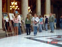 Les gens regardent l'exposition de peintures au Capitole