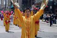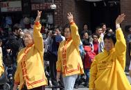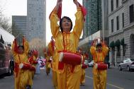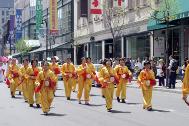 La température était agréable à Montréal le 7 mai 2005 suite à un hiver froid et un printemps pluvieux. Un courant constant de gens allait et venait dans le quartier chinois. Ici, avec la police dégageant la route, on a pu voir dans les rues du quartier chinois une procession accompagnée du son des tambours à la taille et de musique. Les clients, les commerçants et les passants se sont naturellement arrêtés de part et d’autre de la rue pour regarder la parade. Plus tard, ils ont suivit la procession jusqu’au parc Zhongshan du quartier chinois. Soudainement, le parc s’est rempli de gens et l’atmosphère était animée et joyeuse. Les pratiquants de Falun Gong de Montréal et d’Ottawa ont célébré ensemble la journée mondiale du Falun Dafa.