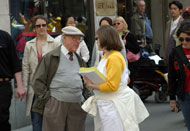 Sur la route, nous avons rencontré quatre chinois qui étaient venus de Chine en voyage d’affaire. Ils n’ont démontré aucune hostilité envers les pratiquants de Falun Gong. En réalité, leur attitude était amicale. Trois d’entre eux ont prit plusieurs photos, manifestant un grand intérêt. Ils ont dit que les gens comme eux qui visitent souvent d’autres pays comprennent tous ce qu’est le Falun Gong.