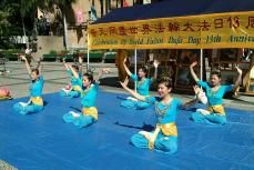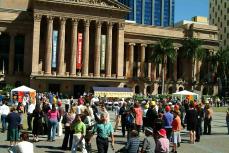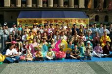 Le 6 mai 2005, le soleil était radieux. Les pratiquants de Falun Gong à Queensland en Australie se sont rassemblés sur la place de l'hôtel de ville de Brisbane pour célébrer le 13ème anniversaire de la présentation publique de Falun Dafa et également pour tenir une exposition d'art sur le thème « Vérité-Compassion-Tolérance. »
