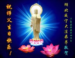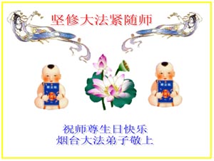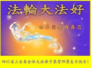 Les pratiquants du comté de Santai, dans la province du Sichuan souhaitent respectueusement à notre vénéré Maître un heureux anniversaire ! Légende : Le Falun Dafa est bon, le monde a besoin de Vérité, de Bienveillance et de Tolérance. Les pratiquants du comté de Santai, dans la province du Sichuan souhaitent un heureux anniversaire à notre vénéré Maître avec beaucoup de respect ! Les pratiquants de Yanbian, Jilin célèbrent le 54ème anniversaire de notre vénéré Maître. Vos disciples feront encore mieux. Maître, Soyez en assuré ! Avec tout leur respect, les pratiquants de Yanbian, Jilin Les pratiquants de Yanji, Jilin célèbrent le 54ème anniversaire de notre vénéré Maître ! Les pratiquants de Aohan, en Mongolie Intérieure souhaitent respectueusement un bon anniversaire à notre grand et bienveillant Maître ! Légende : Retour à l’origine Tous les pratiquants de Aohan seront à la hauteur des attentes de Maître, tenteront de bien faire les trois choses, atteindront la plénitude parfaite et suivront Maître tout au long du chemin de retour. Avec tout leur respect, les pratiquants de Guoaohan Les pratiquants des régions de Tongliao et Huolinguole, en Mongolie Intérieure souhaitent un joyeux festival à notre Maître ! Les pratiquants du site de production de documents de Shanghai souhaitent à notre vénéré Maître un heureux anniversaire, avec tout leur respect !
