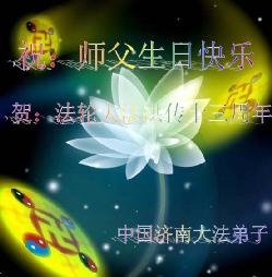 Les pratiquants de Dafa de Jinan, province de Shandong souhaitent à notre grand Maître bienveillant un heureux anniversaire et célèbrent le 13eme anniversaire de la présentation du Dafa au public