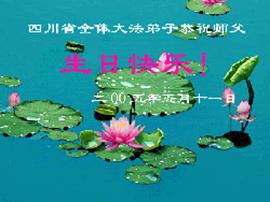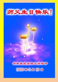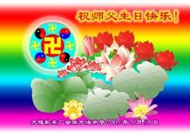 Tous les pratiquants de Dafa de Guangzhou, province de Guangdong souhaitent respectueusement un bon anniversaire à notre grand et bienveillant Maître