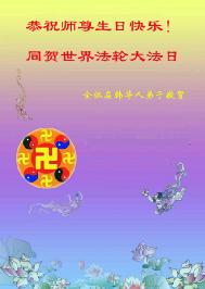 Tous les pratiquants chinois de Corée souhaitent à Maître un Joyeux Anniversaire ! Nous fêtons la Journée Mondiale du Falun Dafa !