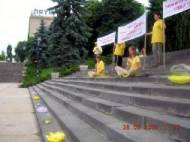 Le 26 juin 2005, le « Jour International de l'ONU» en soutien aux victimes de la torture, les pratiquants de Falun Gong ont tenu une activité au centre ville de Pjatigorsk pour éveiller la conscience des gens au sujet de la persécution brutale de Falun Gong en cours par le régime de Jiang et le Parti communiste chinois et pour demander le soutien pour les pratiquants persécutés en Chine.