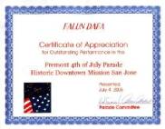 Quand la parade s’est terminée, les organisateurs ont remis aux pratiquants un certificat d’appréciation, les remerciant de leur magnifique performance dans la parade.