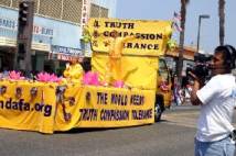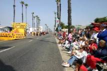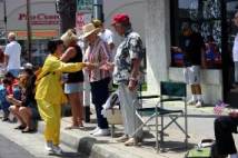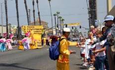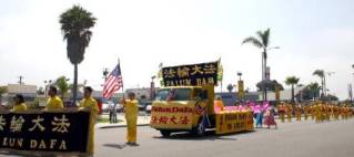 Le matin du 2 juillet 2005, des pratiquants de Falun Gong à San Diego ont participé à la parade du jour de l’indépendance organisée à Oceanside. Le groupe du Falun Gong comprenait une large bannière sur laquelle était écrit « Falun Dafa », un char merveilleusement décoré, une danse traditionnelle élégante et une troupe vigoureuse de tambours à la ceinture. Durant la parade, les pratiquants ont fait continuellement les exercices sur le char pour montrer aux gens la nature paisible et merveilleuse du Falun Dafa. Les danseuses et les batteurs n’ont pas arrêté pendant tout le chemin.