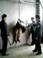 Image 3. Démonstration de torture : Suspendre un pratiquant par les mains qui sont derrière son dos