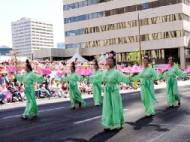 Le but de notre participation dans cette parade est de dévoiler la beauté du Falun Dafa et d’exprimer nos meilleurs voeux aux gens, plutôt que de nous mesurer pour gagner des prix. Toutefois à la dernière minute un faux pratiquant de Falun Gong a téléphoné au comité et a fait en sorte que notre groupe entre dans la catégorie commerciale dans laquelle se trouve des participants très bien financés et compétitifs, ce qui ne nous laissait que peu de chance pour gagner un prix. Quel était exactement son but ? Peut-être que certaines personnes ou certains groupes ne voulaient pas voir le Falun Gong gagner à nouveau la récompense de la meilleure participation culturelle.