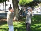 Une fois la parade terminée, les pratiquants ont présenté des expositions anti-tortures dans le parc « Garden Corner Park » situé dans le quartier chinois de San Francisco. La pratiquante Mme Wang qui a pris part à l’exposition anti-torture a dit que cette activité lui remémorait le 20 juillet 1999, six années auparavant. Ce jour là, elle s’était rendue au bureau des appels affilié au conseil des états pour faire appel en faveur du Falun Gong. Elle a été arrêtée par les officiers de police. Ces officier étaient très violent, lorsqu’ils ont enfermé les pratiquants de Falun Gong dans une grande cour et les ont battu. Certains pratiquants avaient été si gravement battus qu’ils saignaient. Elle a encore dit « Six années ont passées. Le PCC pervers n’a pas évolué du tout. Ils continuent tout simplement la persécution d’une manière plus discrète. Aujourd’hui, je viens au parc du ‘Garden Corner’ pour demander au monde d’amener ces meurtriers qui persécutent les pratiquants de Falun Gong en justice. Laissons la justice et la conscience revenir dans ce monde humain. »